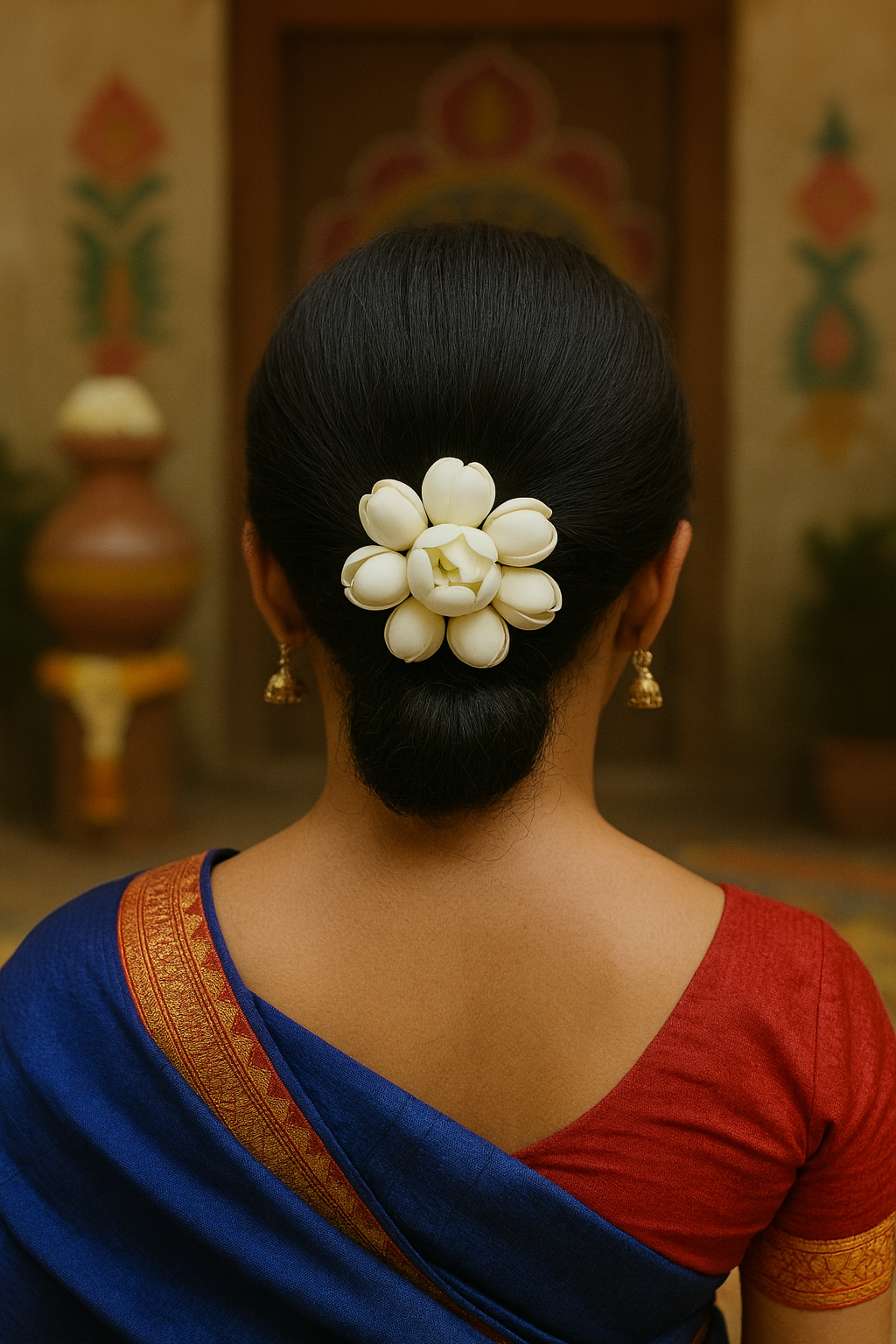 Artificial Jasmine U-Pin brings the elegance of fresh mallipoo without the hassle of fragrance fading or flowers wilting. This premium handmade accessory is crafted with realistic soft-touch jasmine buds arranged in a neat cluster that stays intact all day. Designed for weddings, baby showers, pooja days, temple visits, and festive styling, this U-pin adds a subtle luxurious look to buns and braids.
