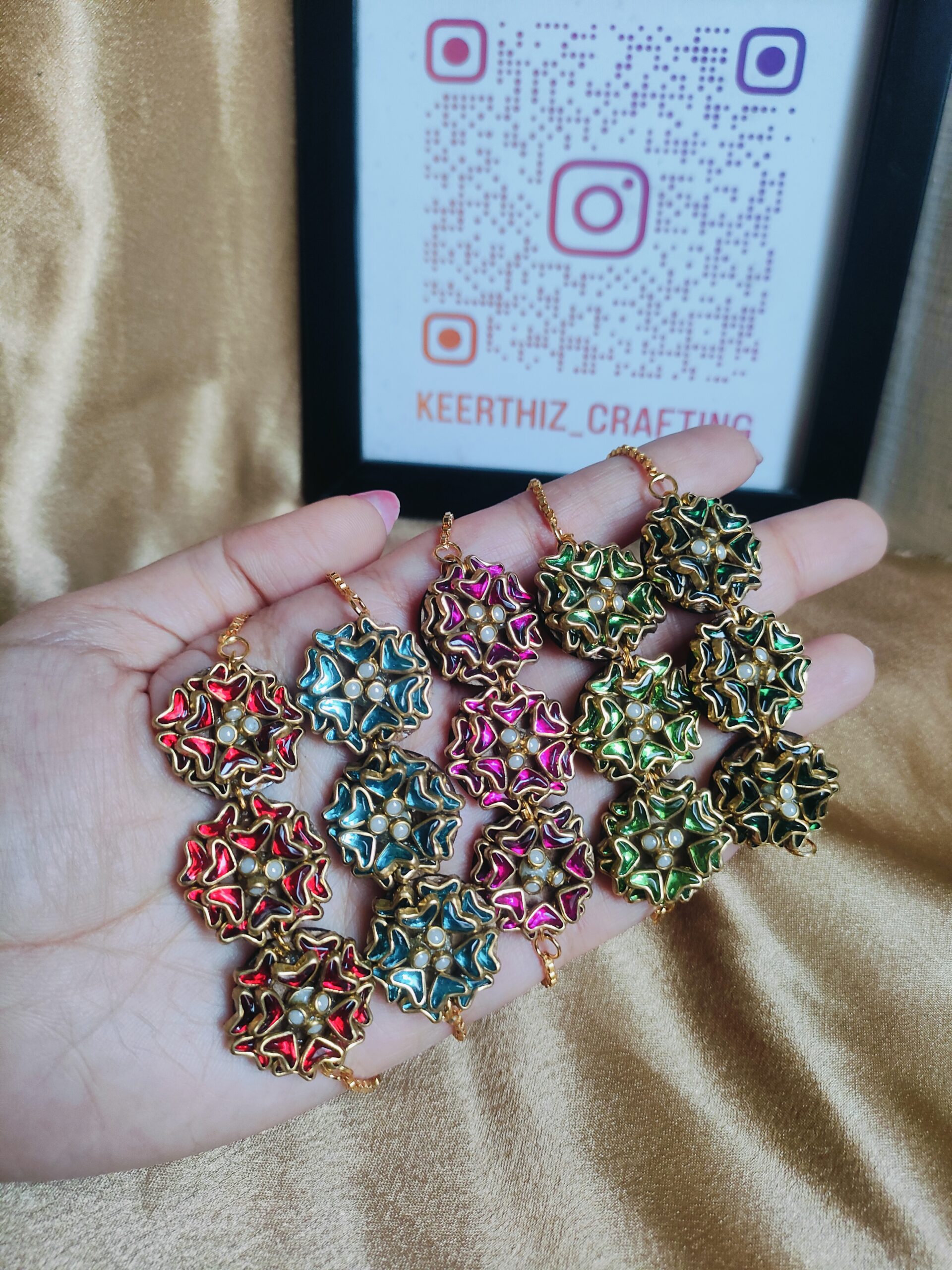 Elevate your style with this elegant Handcrafted 3D heart Flower Adjustable Bracelet , handcrafted from high-quality MDF wood, with intricate stone work. The three floral motifs bring a vibrant and traditional touch to your look, making it perfect for festive occasions or as a thoughtful gift. Available in red, dark blue, dark green, dark pink, violet, light green, onion pink, silver, gold, orange, and sky blue, this bracelet complements both ethnic and contemporary outfits.
