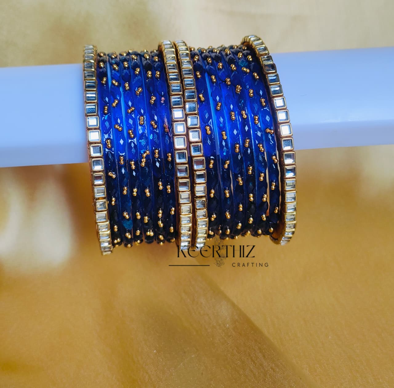 kundan with glass bnagles bridal sets These royal blue semi-kundan bridal bangles are a perfect blend of tradition and elegance, crafted with vibrant kundan stones and a rich gold-toned finish with beautiful rain drop glass bangles . Designed for comfort yet radiating grandeur, they complement both bridal and festive attire. Ideal for weddings, receptions, engagements, festivals, and traditional ceremonies, these bangles add a timeless charm to any bridal collection. 3d bangles . Available in multiple shades and customizable to match outfits, they serve as stunning keepsakes as well as memorable gifts for brides.