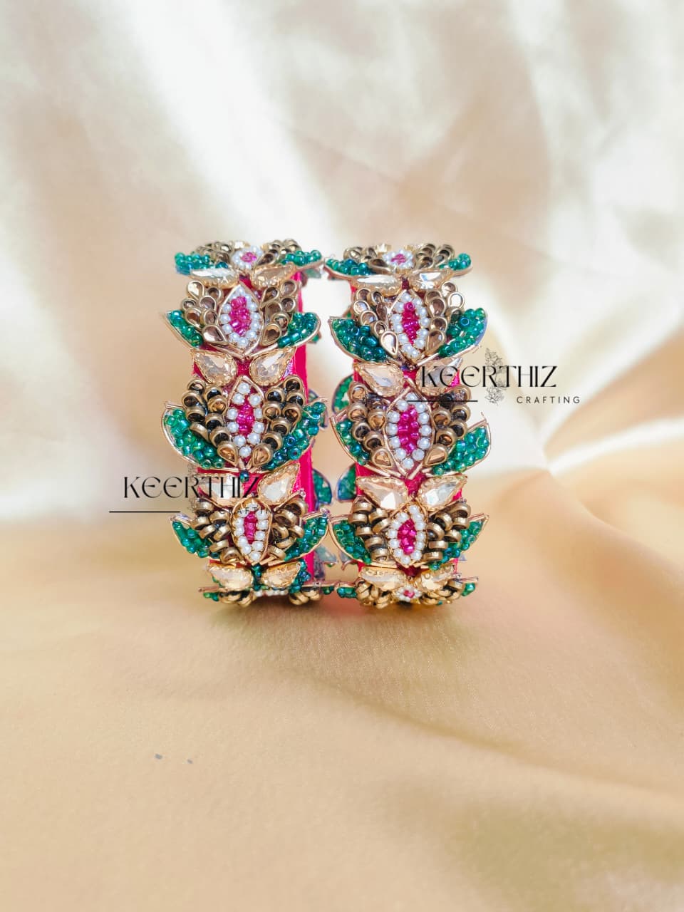 The Lotus 3D Silk Thread Bangles combine symbolic elegance with lightweight comfort. Each bangle is handcrafted with premium silk thread and features a raised lotus motif — ideal for temple visits, puja return gifts, Pongal hampers, bridal events and cultural gifting. Colour matching is available to suit saree shades or theme palettes. Making time: 2–3 business days. Contact us if you need bulk quantities or specific colour matches.