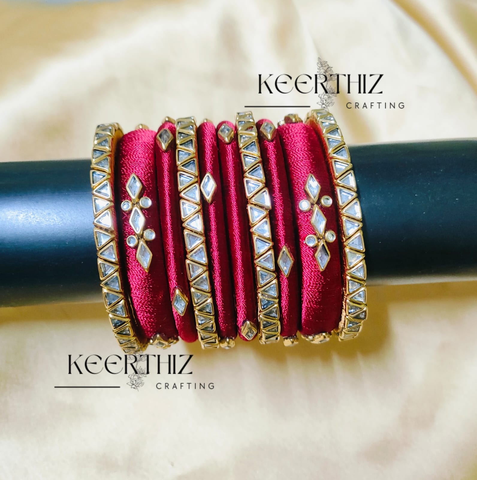 The Semi Kundan Bridal Bangles are a beautiful blend of traditional artistry and modern bridal elegance. Handcrafted with premium silk threads, semi kundan stones, and beads, these bangles are designed to complement your wedding attire. Each pair can be customised to suit your outfit’s colour theme, whether you prefer the timeless red and gold bridal look or a unique modern palette. Lightweight yet regal, these bangles add sophistication and grace to your bridal ensemble, making them a cherished keepsake for your big day.